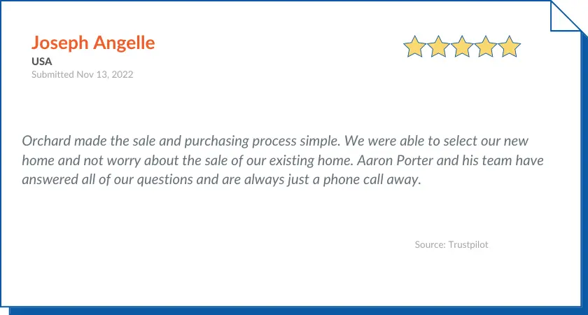 Orchard Homes facilitates a seamless online process. First, Orchard provides a free home valuation on their website. For this, Orchard’s agent will take a 30-minute assessment. After that, their home advisor estimates the value of your property.